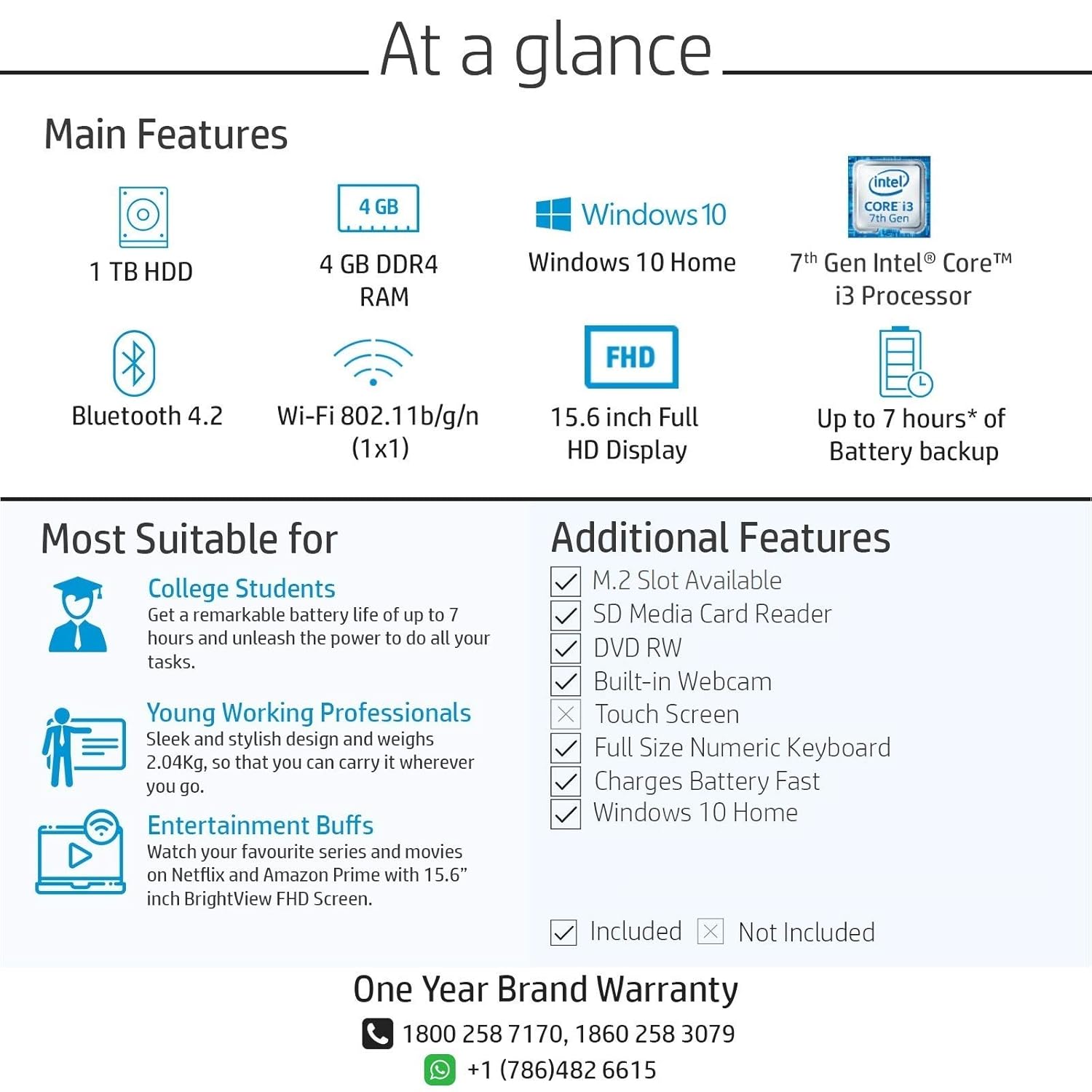 Warranty: This genuine HP laptop comes with a 1-year domestic warranty from HP covering manufacturing defects and
